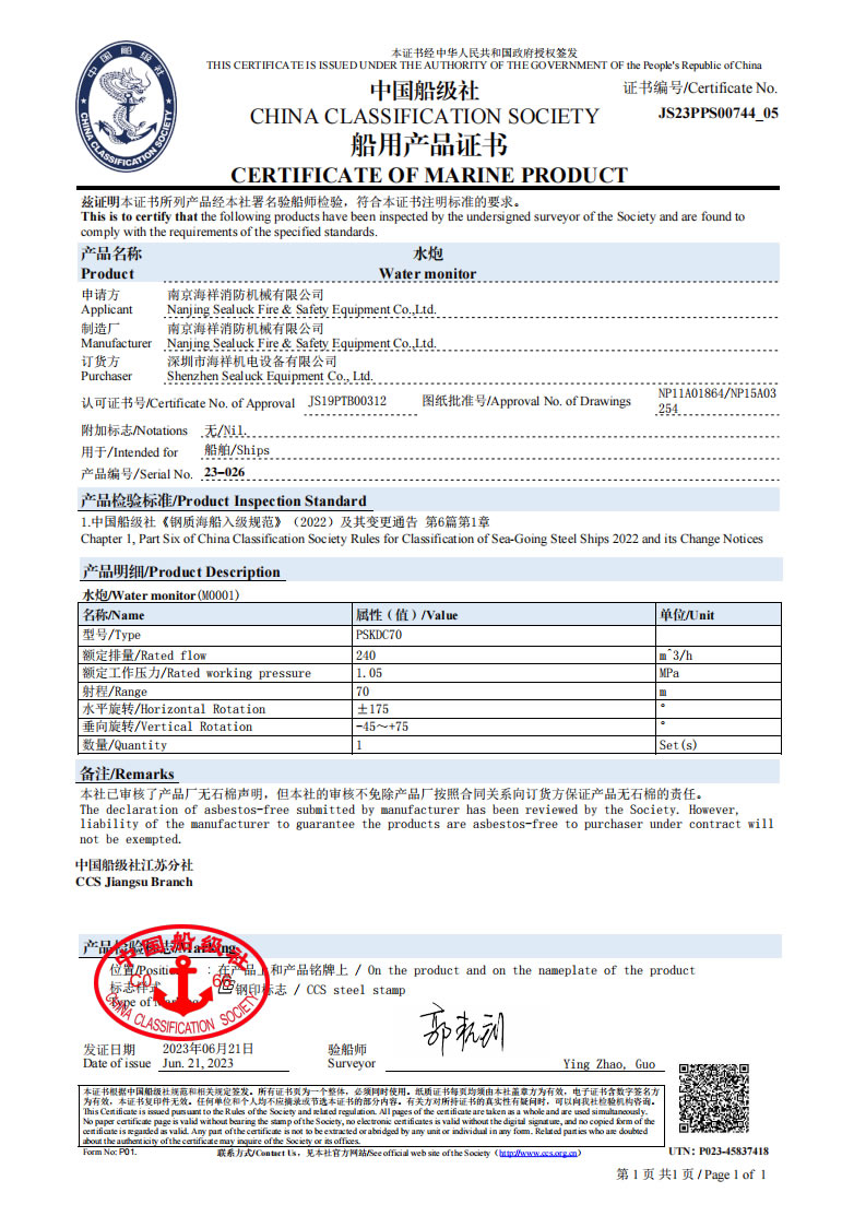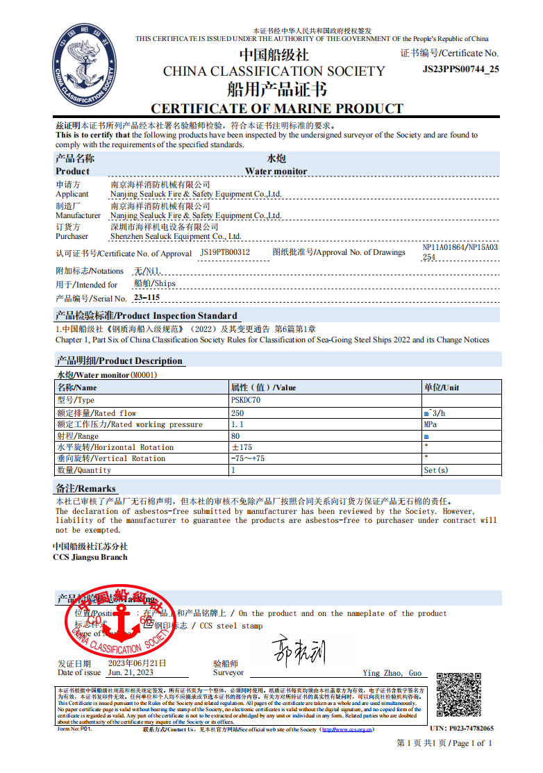 中国船级社-船用产品证书2