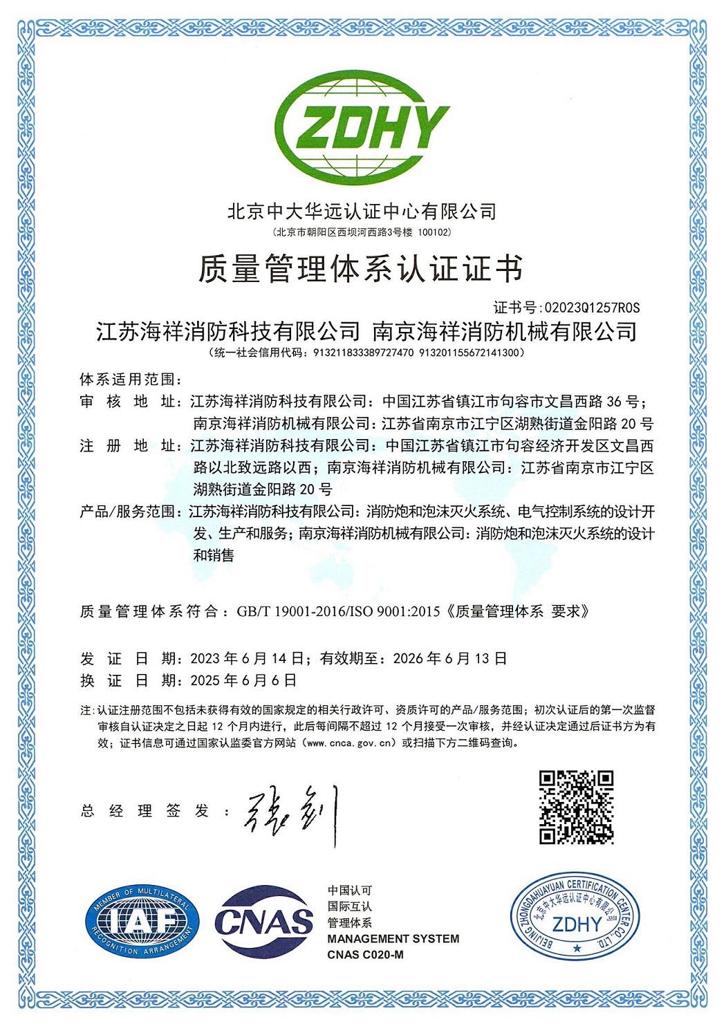 质量管理体系认证证书