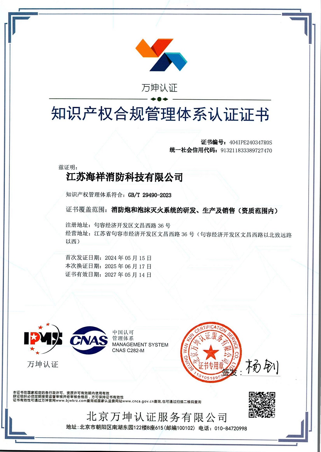 知识产权合规管理体系认证证书